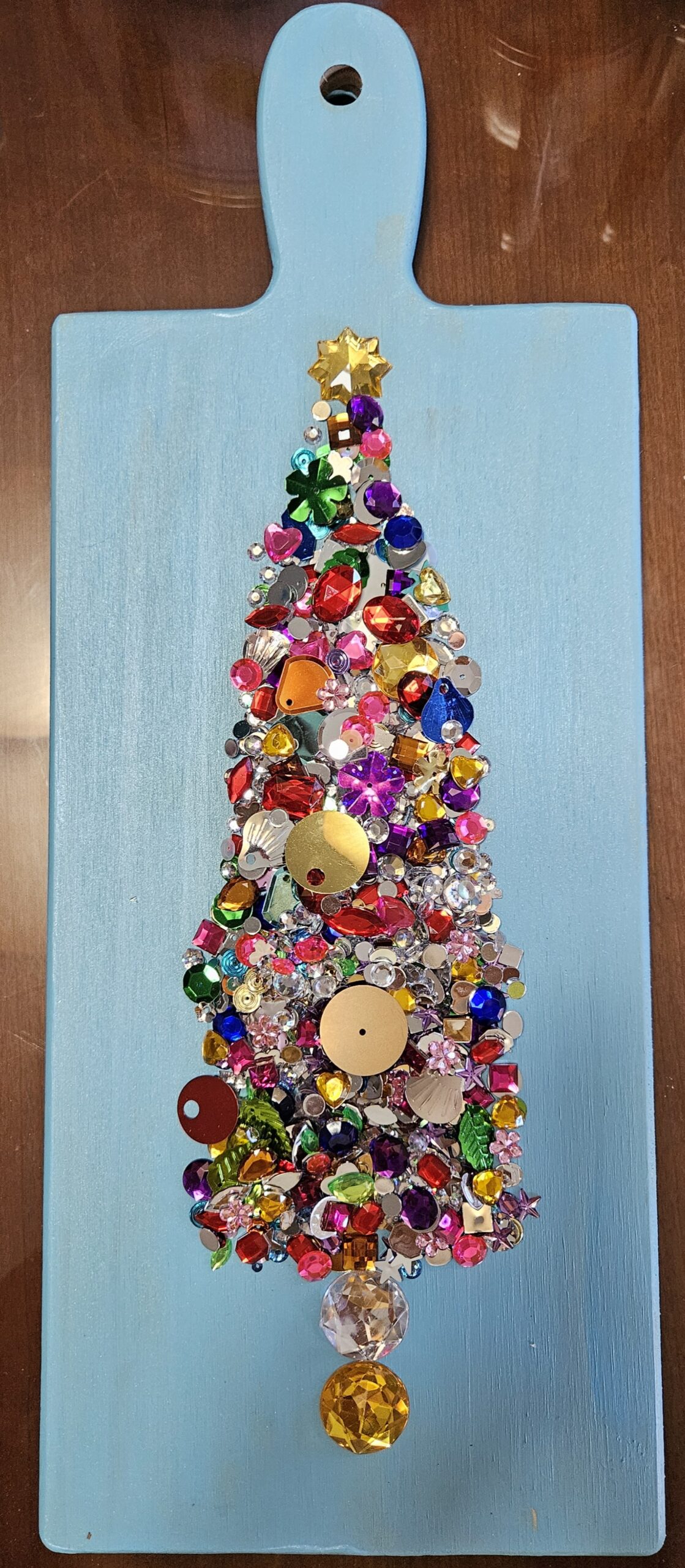 We will be learning how to use resin and its properties over these gems in the shape of a tree. Resin can be used over our pictures. It is a good technique to know. You can create your own design as well. You will need to choose a 11-inch surface. See October calendar for all supplies you will need to bring and what will be provided for our normal $7. fee.